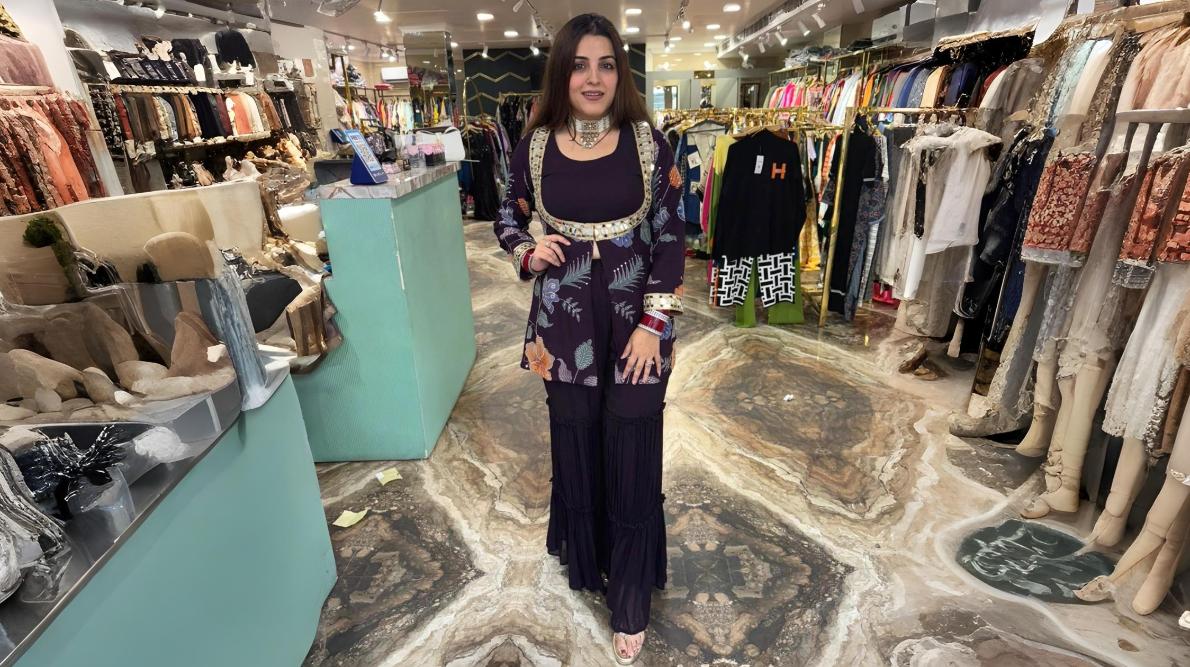 Beautiful Four pc fully embroidered saree with fully stitched blouse jacket and belt