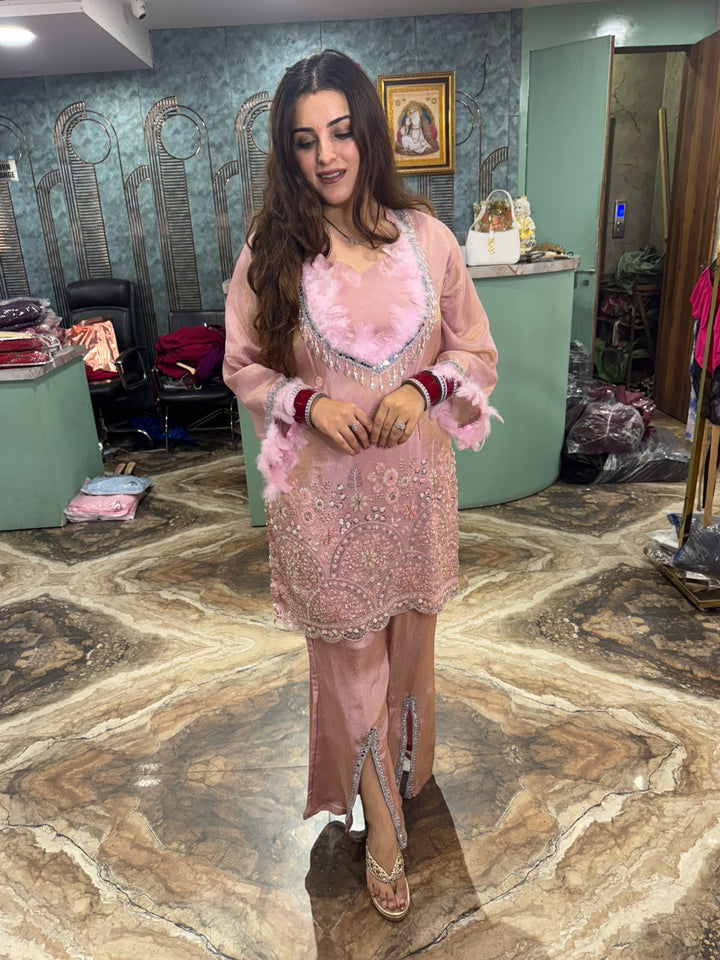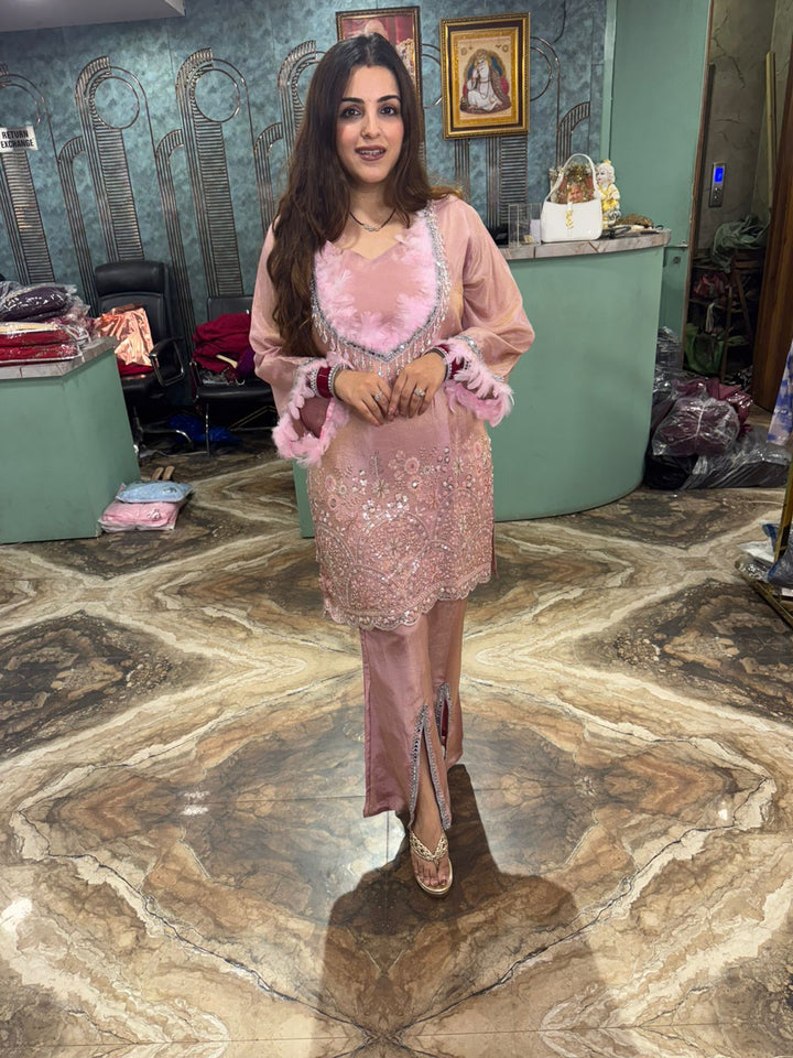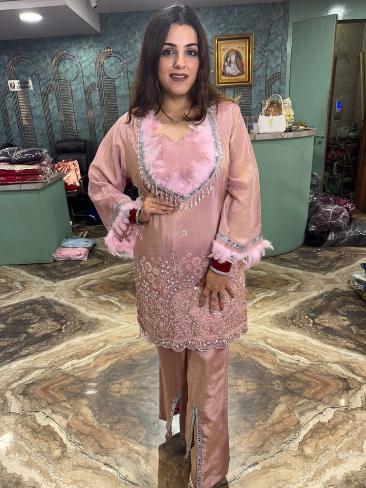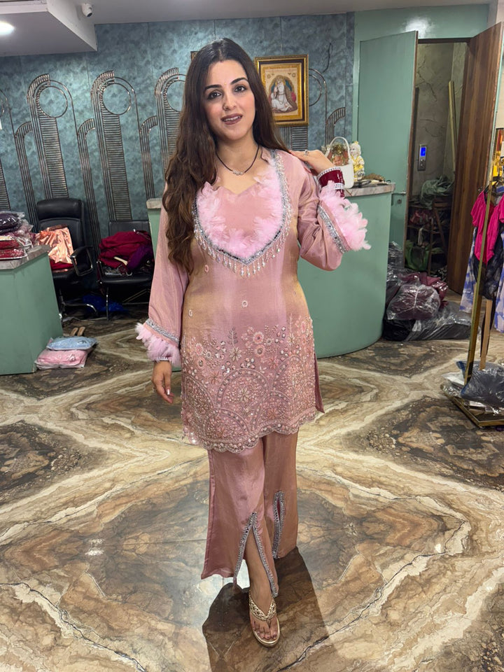 Kurti Highlights: Designed in a soft blush pink tone with a delicate sheen.