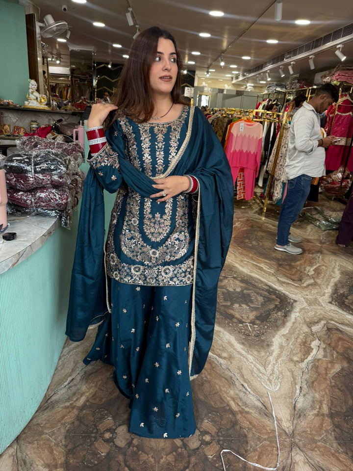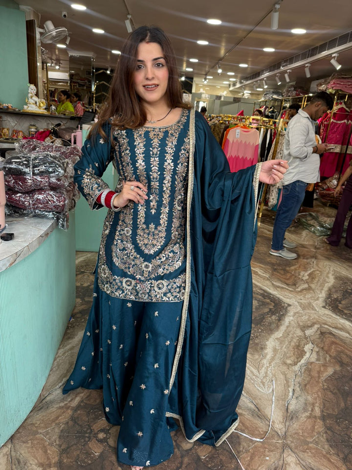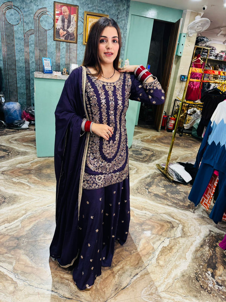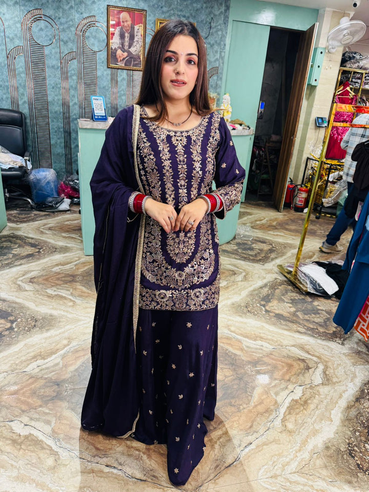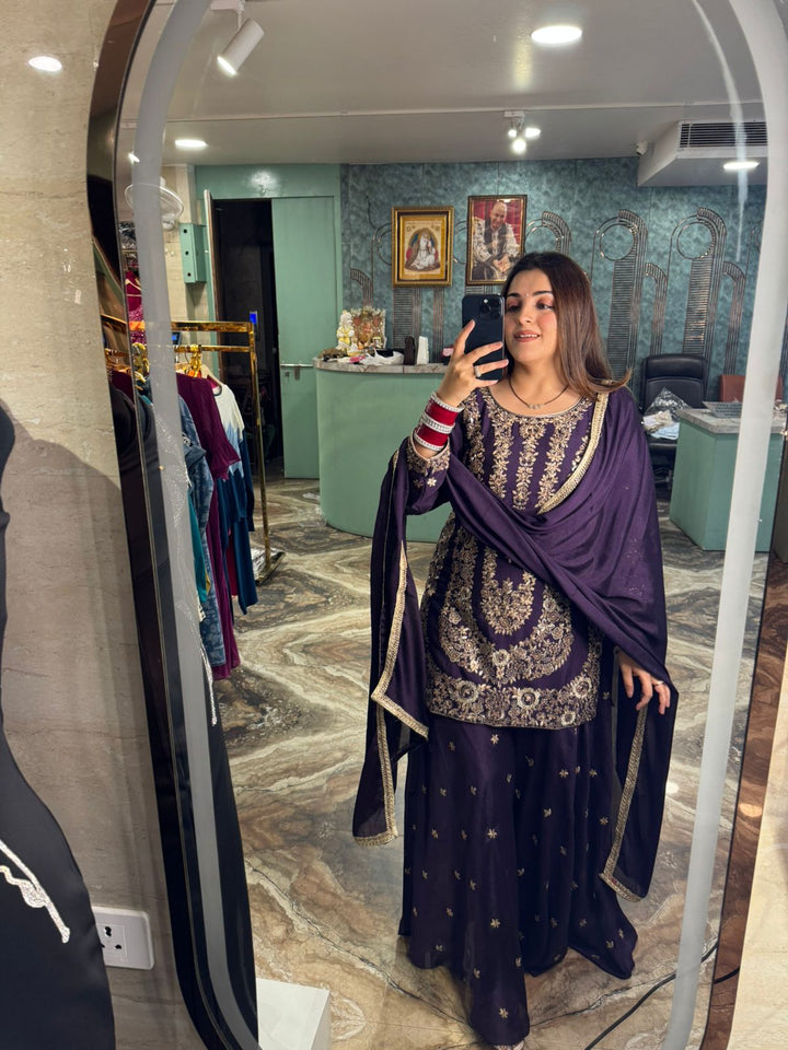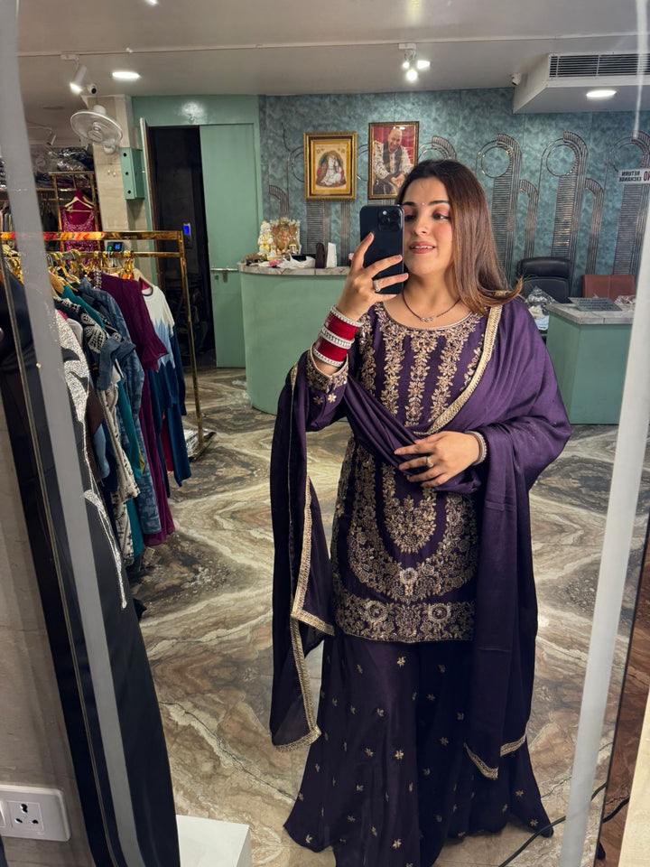 Scarlet Regal Embroidered Sharara Set